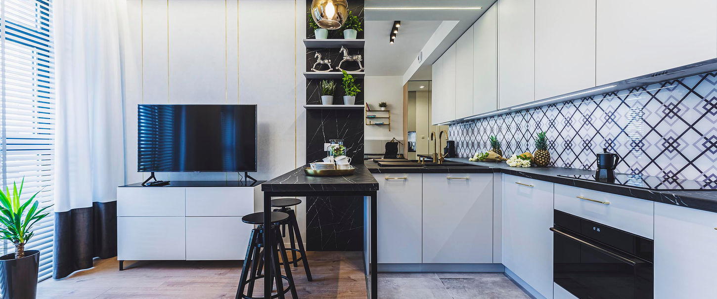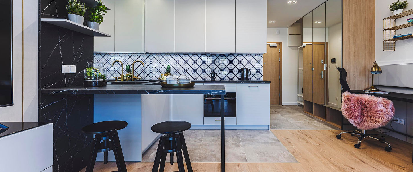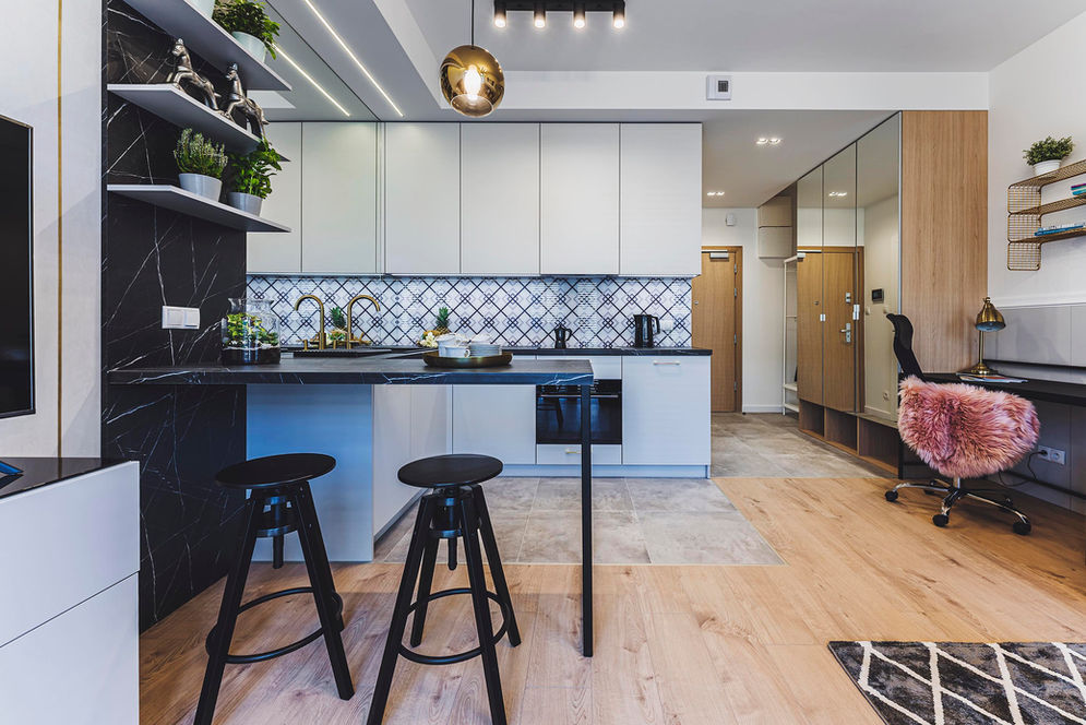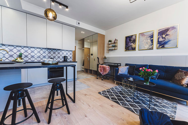 Nowoczesna, w pełni wyposażona i przestronna kawalerka z zamkniętym patio. Design jasny w stylu "modern"