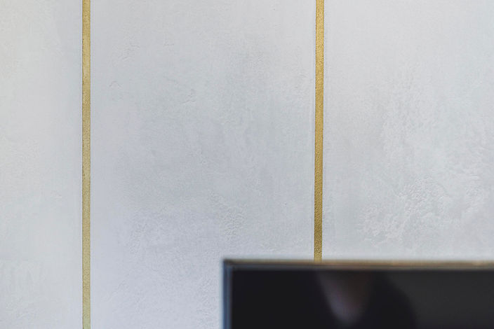 Sofa z funkcją spania, duża szafa, telewizor LED smart TV (Netflix, VOD), stolik kawowy, biurko z krzesłem, ozdobny beton na ścianach.